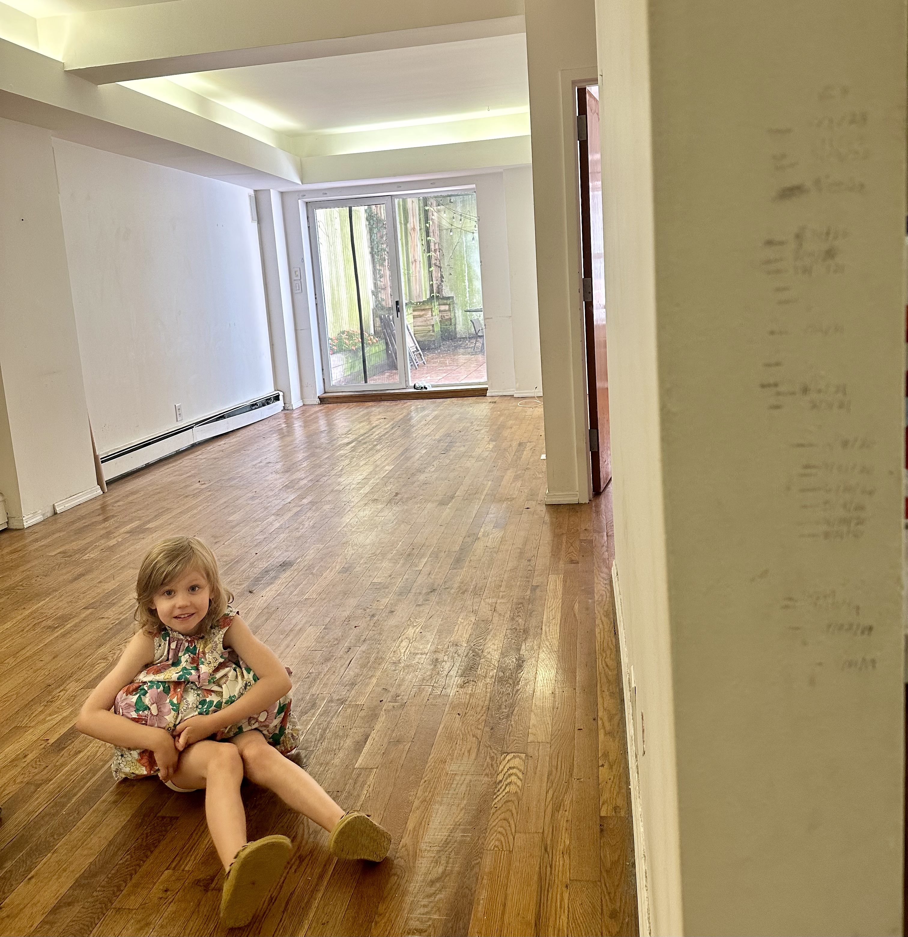 In fall 2023, my family moved from Manhattan to Madison. This is a photo of our empty living room and the wall where we had tracked my daughter's height since she was 18 months old.