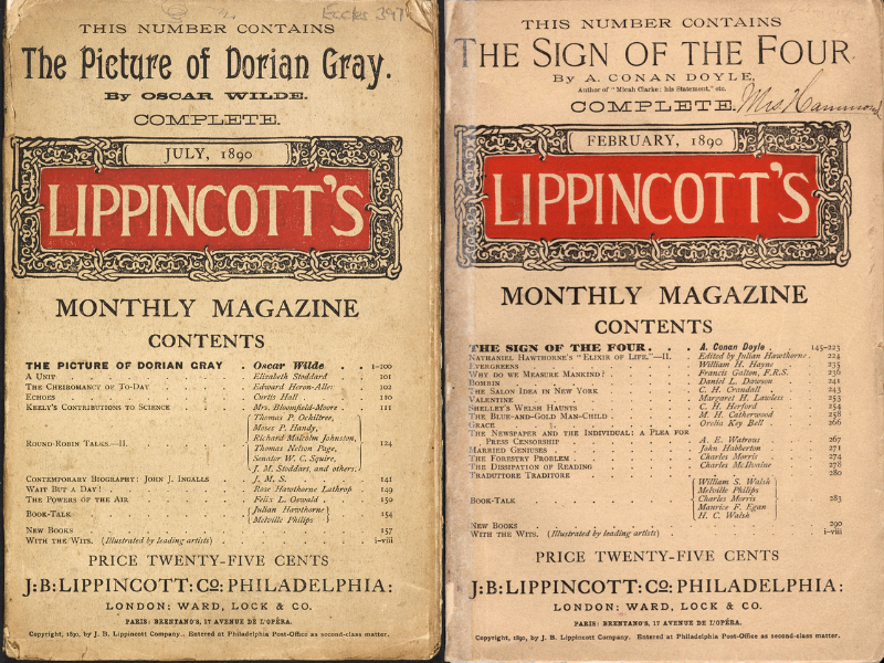 In 1890, Lippincott's Monthly Magazine solicited the publication of Doyle’s “Sign of the Four” and Wilde’s The Picture of Dorian Gray.