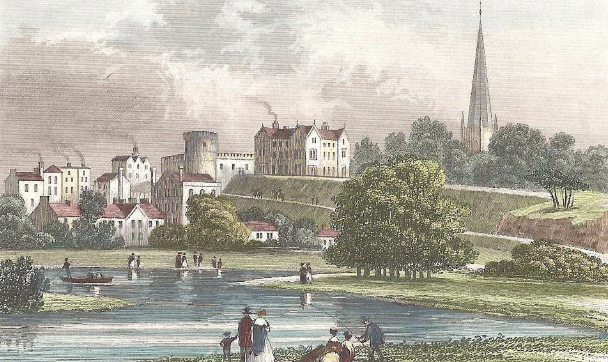 The river scenery, which was the main attraction of the Wye Tour, offered a very specific kind of picturesque pleasures. The boat passage was smooth and easy, allowing the guests the opportunity to focus on the sights unfolding around them. William Gilpin, an 18th century artist who is believed to have originated the term “picturesque,” and whose guidebook many of the sightseers used to accentuate the tour, divided the trip into “four grand parts”: the area, which was the river itself; the two-side-screens, which are the dueling banks of the river, and so mark the perspective; and the front-screen, which traces the winding path of the river itself. Gilpin went on to say that the chief delight of the tour, while being composed of simple parts, is that the view is “infinitely varied.”