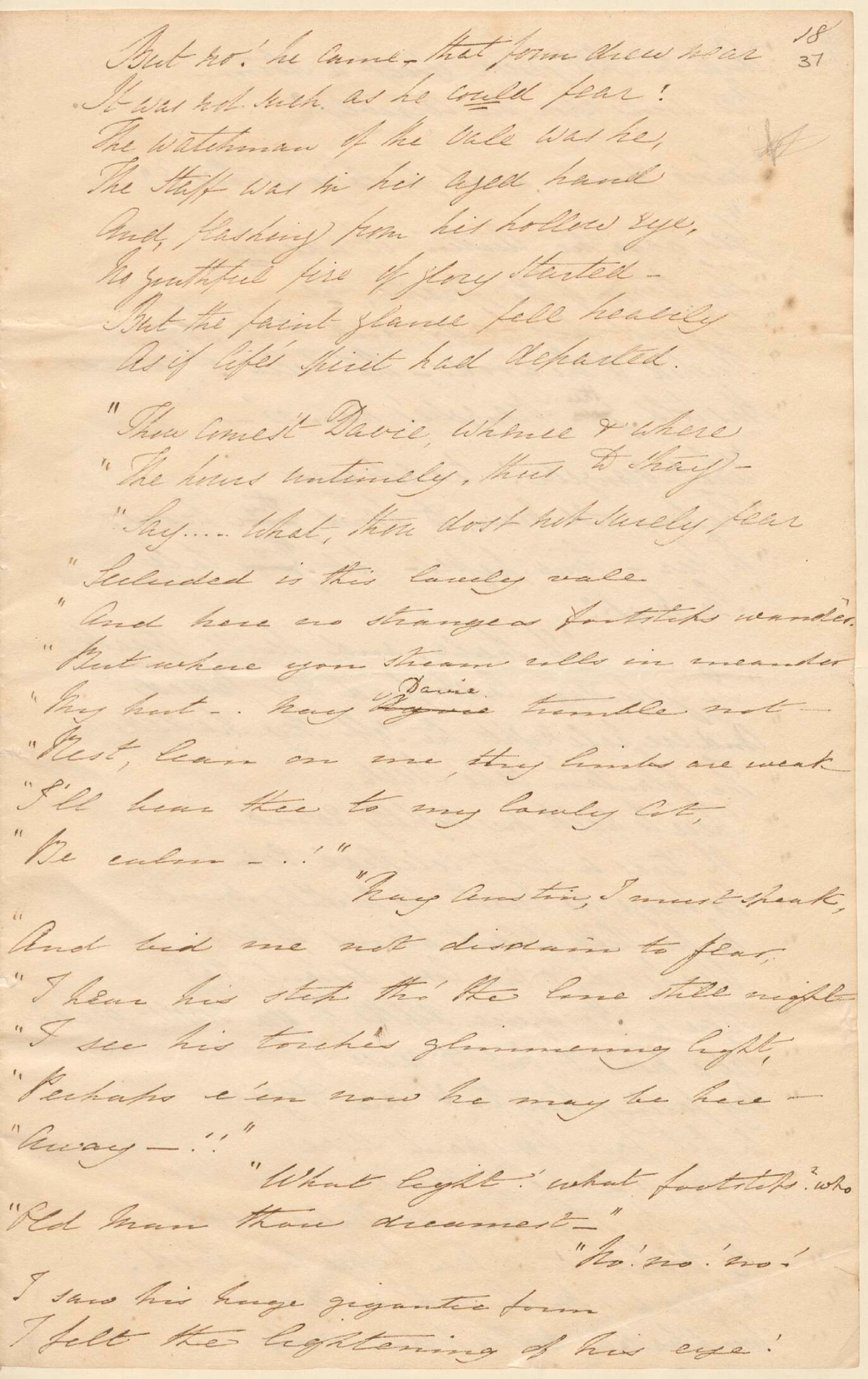 "My hut –. Nay [illegible] Davie tremble not –