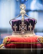 The Koh-i-Noor in its original setting vs. British setting and display & the Timur Ruby. The Timur ruby has 4 names of previous owners carved on it.