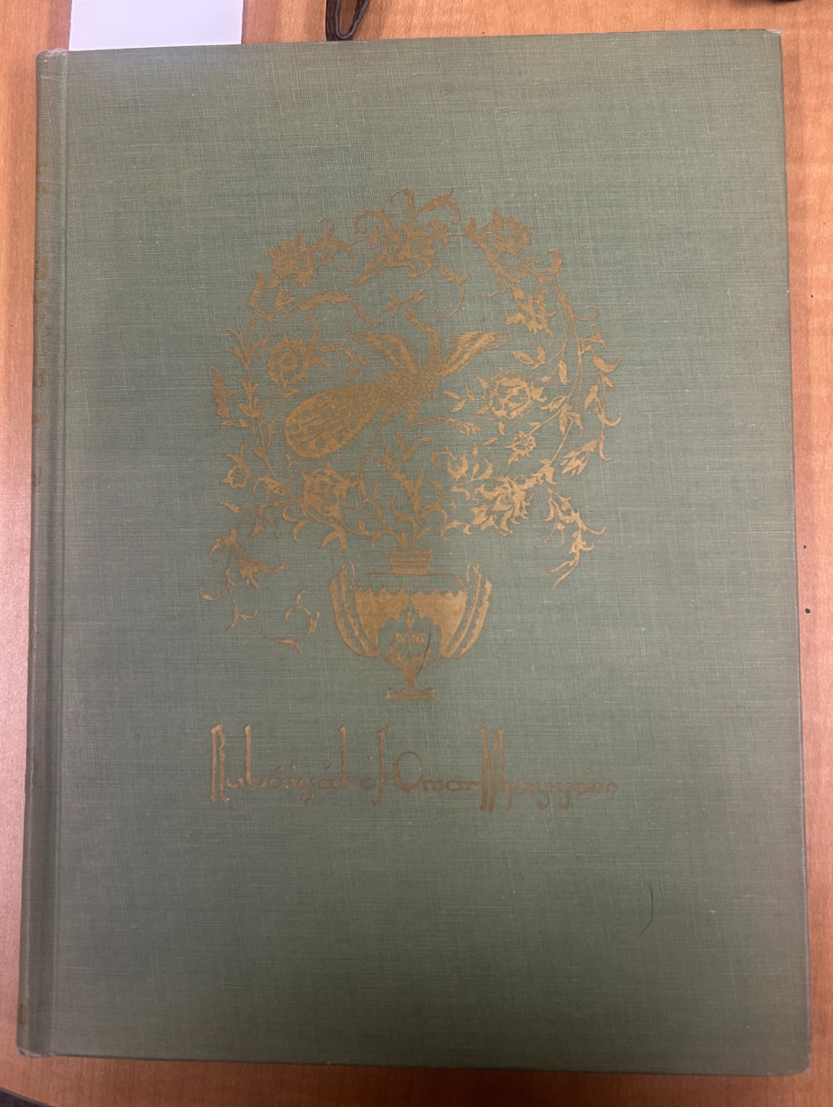 I know times are hard now, and money has been a bit tight since the market crashed, but I wanted you to know how much I love you, and wanted you to have something you could enjoy and admire. As such, with this book and letter, you’ll find a bottle of wine. When I return home, we can read through the poem and enjoy a few glasses together. To quote stanza 7, “Come, fill the Cup, and in the Fire of Spring//The Winter Garment of Repentance fling:// The Bird of Time has but a little way//To fly — and Lo! The Bird is on the Wing.”