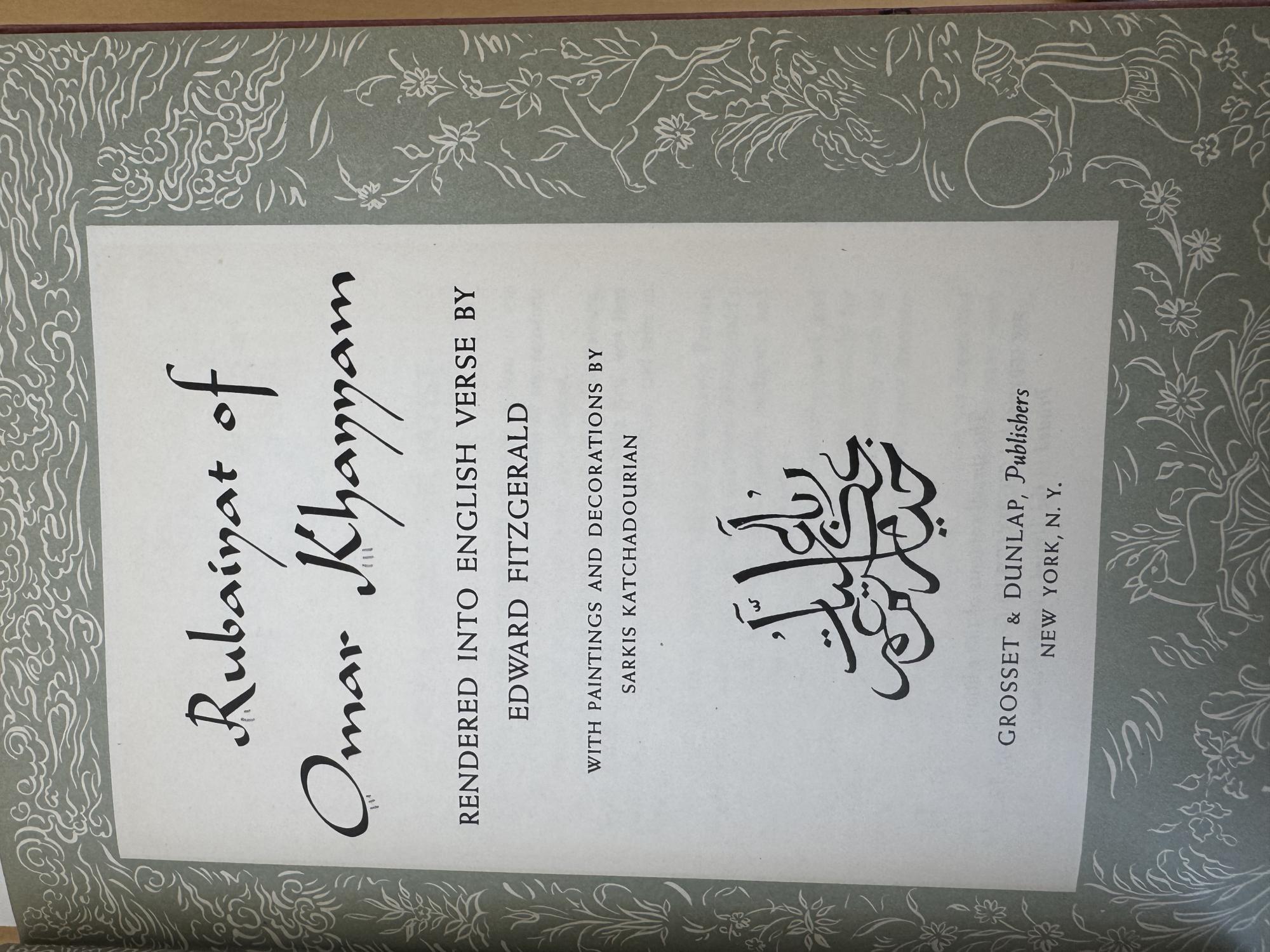 In the past few weeks I have reflected fondly on our time at university together. Your letters bring me great joy, and I am so happy you have been able to chase your dreams and travel India as you once wished to. The painter you wrote me about, Katchadourian, actually illustrated an edition of Omar Khayyám's Rubáiyát, which I have been teaching to the students in my class. His artwork is very intricate and vivid on the page and I understand why his work stirs something within you. I am sending you one of these illustrated copies, as you mentioned a fear of boredom during your long journey back to the states. As you love art, you know language is quite dear to me, so the copy I have sent you also has some of my personal annotations.