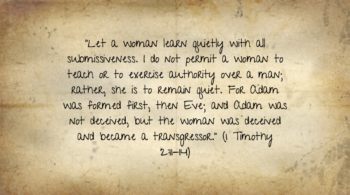 Coming across this verse in the Bible, I feel so wretched, so miserable, how can one explain this feeling of defiance? My God should love me, as I am his creation, however I am deemed inferior to man. Why shall women be bound to the restraints of idiocy? It is ever since the creation of humankind that women are regarded as lesser than, as transgressors, as submissive twits, unable to accomplish any title greater than wife and mother. Why must women be confined to knowledge of only maternal and spousal duties? I yearn to learn of art, history, and science. I am unconcerned in finding a partner and bearing children, slaving away for the delight of others. My desires lie in selfishness. I long to be selfish, to see only the course guiding me towards my own luxury, to disregard the authority of man and find happiness within only myself. If Adam was created first, then I shall be the transgressor, I shall be the deceiver, and I shall transcend over all. Adam is of no concern to me, and if God does not permit women to assert themselves, then his authority no longer commands me. I shall quench my thirst for knowledge and explore my passions, defying so called femininity; if man is the only rightful scholar, then it is man I shall become. Rather than tending to children, polishing the home, and taking the last name of another, I shall work, as a mathematician, an astronomer, or whichever occupation enables my discovery of solace. It is with this vexing bible verse that I find myself able to breathe, realizing that my true governess is myself.