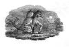 Thomas Bewick, Tailpiece to "Razor-Bill," for A History of British Birds, Volume 2, 1804, personal collection. Bewick created many attractive images of birds in their natural surroundings, but Jane ferrets out vignettes akin to the wild, at times desolate, landscape of the moors. "Each picture told a story;"---Jane tells us--"mysterious often to my undeveloped understanding and imperfect feelings, yet ever profoundly interesting: as interesting as the tales Bessie sometimes narrated on winter evenings, when she chanced to be in good humour." Seemingly overlooking beautiful pastoral images of a peacock and swan or the majesticness of a Golden eagle pictured in this case, Jane lingers over pictorial moments that speak to her sense of isolation while living amongst the Reeds at Gateshead. The vein of popular culture that Bewick presents in vignettes with foul and turbid weather, supernaturalism, death, and violence fascinates Jane. The graveyard image that sparks Jane's fancy is easily identifiable. The words on the "inscribed headstone" read forebodingly, "Good Times & Bad Times & all Times get over." The tombstone casts a long and dark shadow, and the "newly-risen crescent" throws an eerie light on the solitary trees, broken wall, gate, and tombstone. Jane states, "I cannot tell what sentiment haunted the quite solitary churchyard," but to the reader-viewer, the scene exudes a weird air.