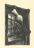 Fritz Eichenberg, "Jane Reading in the Window Seat," Jane Eyre (1847), 1943 Random House edition, personal collection. At the opening of the novel, Jane describes her experience reading "Bewick’s History of British Birds: the letterpress thereof I cared little for, generally speaking; and yet there were certain introductory pages that, child as I was, I could not pass quite as a blank. They were those which treat of the haunts of sea-fowl; of 'the solitary rocks and promontories' by them only inhabited; of the coast of Norway, studded with isles from its southern extremity, the Lindeness, or Naze, to the North Cape—.” Eichenberg changes Jane's posture--she is not mounted "like a Turk" as Charlotte poses her in the book--and the curtains remain open. However, Eichenberg expertly captures Jane "reading" the Bewick illustrations so intently in her private reading nook, that is until she is disturbed by her cousin John Reed, who flings the Bewick book at her and tells her not to rummage his bookshelves.