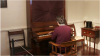 Still from The Tenant of Wildfell Hall, 1996 Film Adaptation, dailymotion.com. The piano plays a major role in The Tenant of Wildfell Hall, displaying how pianos can fuel romantic situations as well be a teaching tool. In this film still from The Tenant of Wildfell Hall (1996), Helen and Mr. Huntingdon gather around their piano. As members of the upper class, the piano would be a staple of their home. The piano shown onscreen does not appear to be a historically accurate rendition of a cabinet piano. Within this scene, although Mr. Huntingdon's hands appear to be on the keys, Helen occupies the piano bench, displaying that the piano is a gendered object in the home. Within this novel, Helen's nemesis, Annabella Wilmot, is reportedly very skilled at piano, attracting the attention of Helen's abusive future husband, Mr. Huntingdon. Annabella, for example, "... exultantly seated herself at the piano, and favored [Mr. Huntingdon] with two of his favorite songs, in such superior style that even I soon lost my anger in admiration and listed with a... gloomy pleasure" (A. Brontë 140). Helen, and by extension, Anne herself, appreciates the beauty of the instruments over the hatred she has towards Annabella. The "gloomy pleasure" that Helen feels reflects this chagrined respect for Annabella's abilities. Annabella is using her skills to "favor" Mr. Huntingdon, displaying one of the purposes of the piano in upper-class societies: to woo men. Although Annabella does not ultimately marry Mr. Huntingdon, they do later have an affair, displaying that Annabella's piano skills have, in a way, held Mr. Huntingdon's attentions.