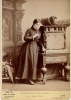 "Charlotte Thompson in Play Adaption of Jane Eyre," 1874, Wikipedia. The fourth plate is a photograph from an 1874 play adaption of Charlotte Brontë's Jane Eyre (1847). Charlotte Thompson braces her hand against a piano in this image, displaying a strong connection between the heroine and the instrument. Jane, as a fictional Victorian era governess, is skilled at the piano, allowing her to teach her pupils how to play the instrument. This is noted when Jane first arrives at Thornfield Hall and is taken to the library, where she will teach Adèle. Charlotte writes, "Adèle and I withdrew to the library, which room, it appears, Mr. Rochester had directed should be used as the schoolroom... there was a cabinet piano, quite new and of superior tone; also an easel for painting and a pair of globes" (C.Brontë 95). As a governess, Jane is expected to instruct Adèle in piano. Moreover, Jane says that the instrument is a "cabinet" piano, the same type of instrument that Patrick Brontë gave to his daughters. Within Jane Eyre, pianos further romantic plotlines as well.
