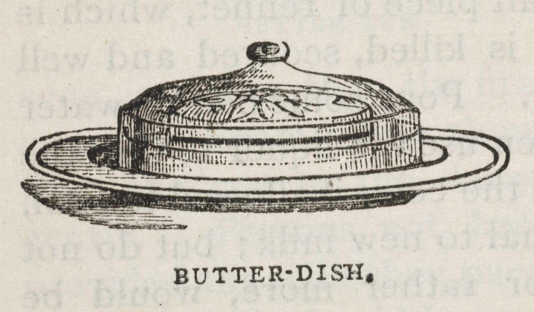 The cultural and social elements of butter, however, were at the surface of a much more vast history involving production, economics, and maintenance. During the 19th century it was common for butter to be produced in Ireland before being transported to England. Spoilage was therefore a concern, and it was common practice to salt the insides of butter tubs heavily to keep it from going rancid. Women, who bore the responsibility of managing food and drink, were often advised by etiquette manuals to buy butter in small quantities to prevent it from spoiling. All of these factors resulted in the small pat of butter that sat upon the tea board in the Victorian house, painstakingly prepared by many hands — from the Irish churn to the sterling silver butter knife, its eventual use would not just be a nutritional supplement, but a symbol of comfort.