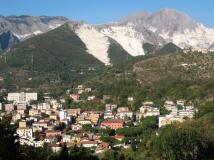 Carrara is a town in Tuscany, Italy and is famous for the white or blue-grey marble quarried here, of the same name. The Romans built quarries here in the second century BCE, and it has been controlled by Byzantines, Lombards, the Holy Roman Empire, and many prominent Italian families. Near the end of the nineteenth century, anarchist movements began here, especially among quarry workers.