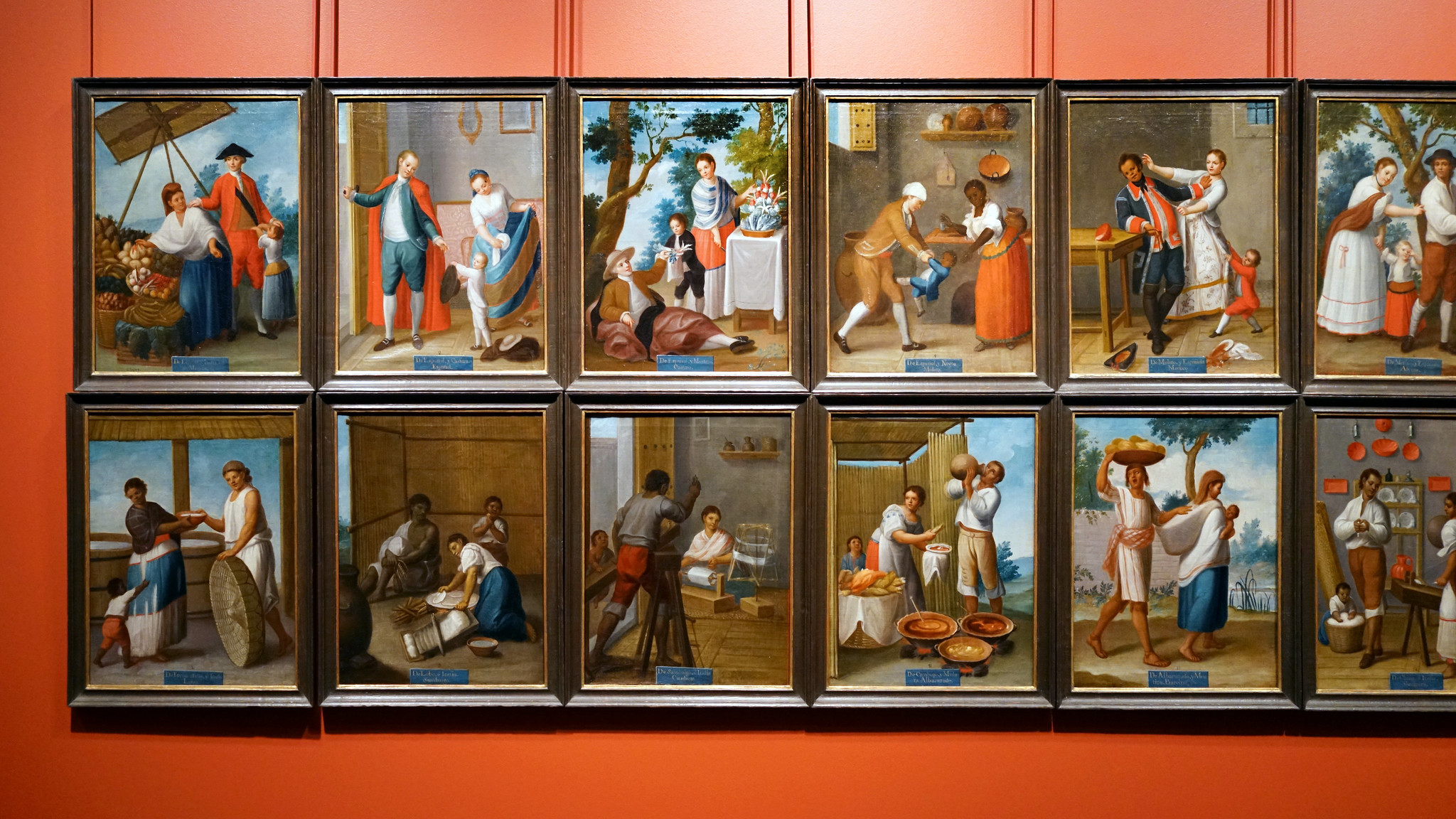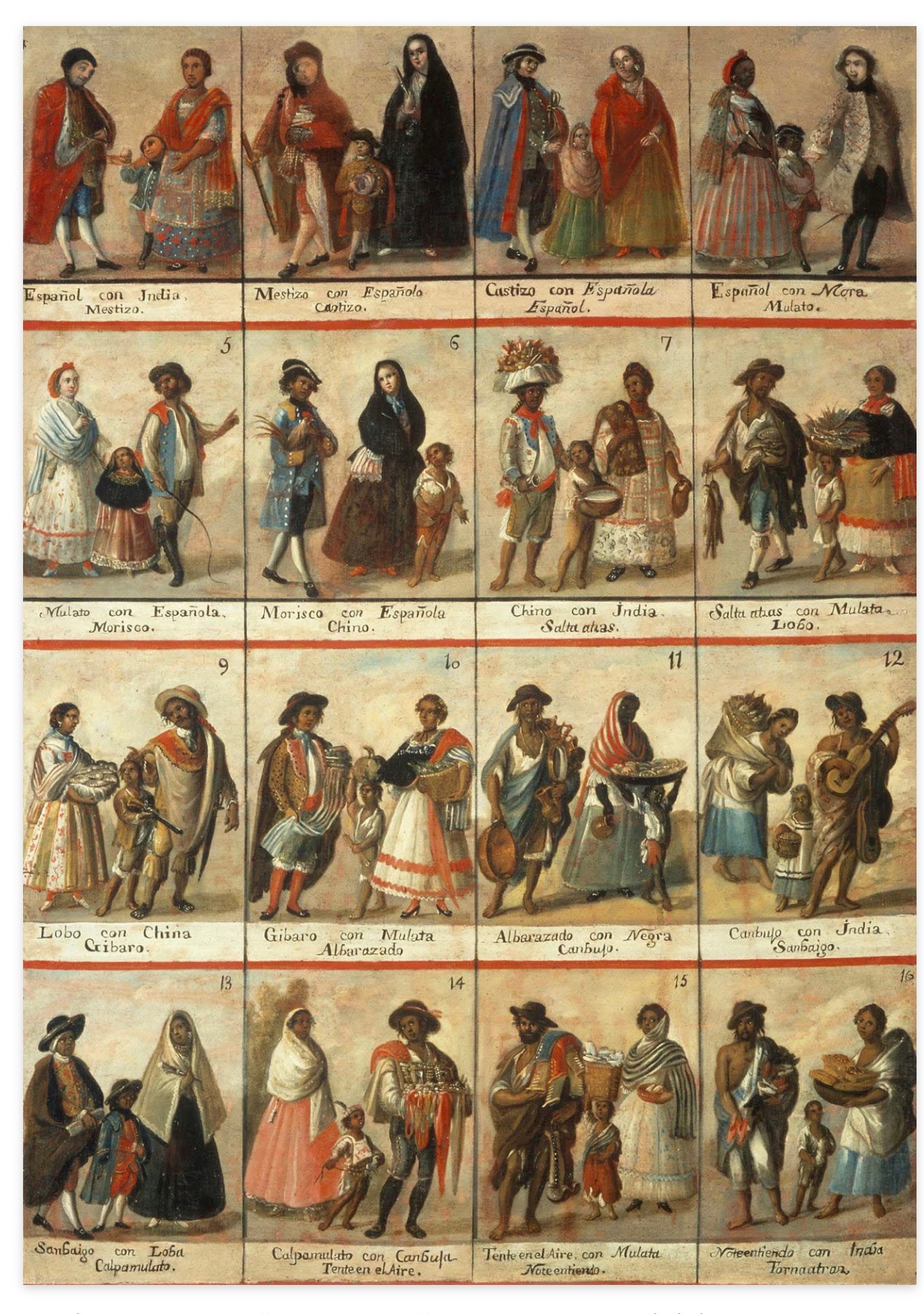 In the Casta painting De Espanol, e India, nace Mestiza, there is evident racial mixing occurring, as a native Mexican woman and a Spanish man created the child. This occurred with frequency in Mexico when the Spanish arrived, which blended both cultures and created a racial blur for many Mexicans today. In the painting, it is evident how different both Mexican and Spanish cultures are. For one, the woman is dressed in traditional native clothing unique to her tribe possibly, and the artist shows the native foods of Mexico. In comparison, the Spanish man wears formal attire…
