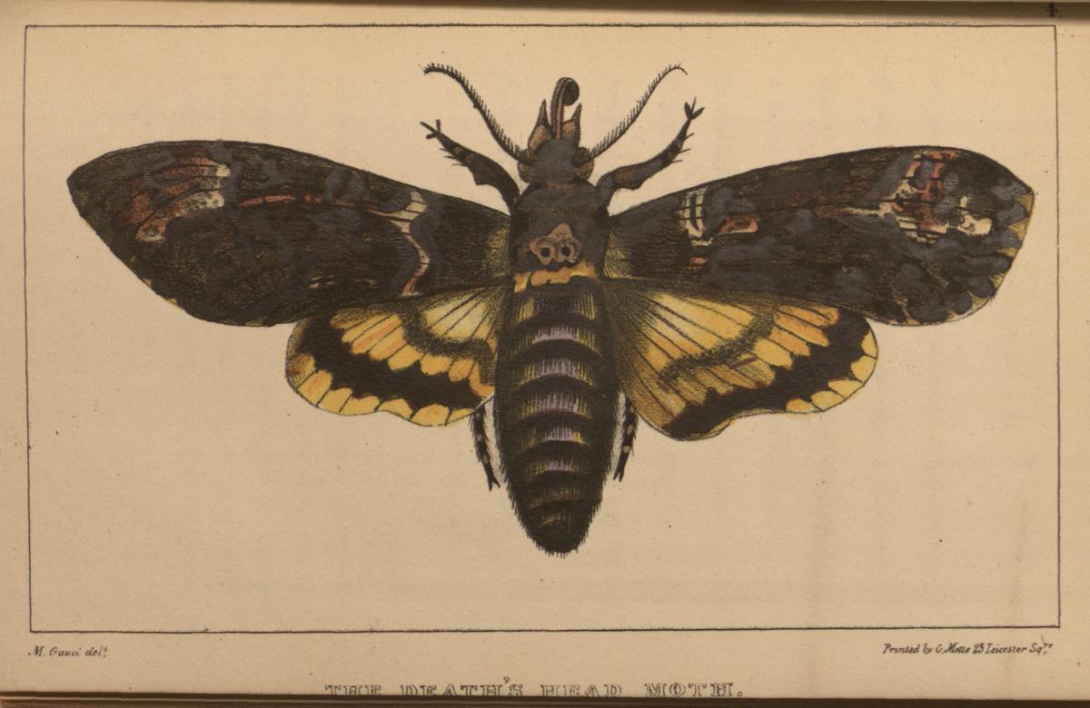 This image depicts a death's-head moth on a white background, with wings outstretched.3This image depicts a death's-head moth on a white background, with wings outstretched. Copyright © Vetted? Yes