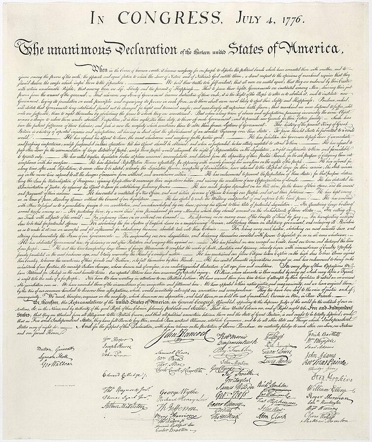 "File." Wikipedia, Wikimedia Foundation, 17 May 2021, en.wikipedia.org/wiki/File:United_States_Declaration_of_Independence.jpg. Accessed 5 May 2024.
