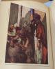 This edition of Rubaiyat of Omar Khayyam is written by Omar Khayyam and translated by Edward FitzGerald. It was published by T.N. Foulis in 1910. It is illustrated by Frank Brangwyn. This edition is Seventy-one pages. The illustrations throughout this edition are pictures of parts of several oil paintings by Brangwyn, each illustration is accompanied by a cover page with a quote from the Rubaiyat to accompany the picture and a note with Frank Brangwyn’s name. The illustrations seem to be glued onto the pages sporadically through the book. The oil paintings are full of vivid colors, and they all contain pictures of people. Frank Brangwyn was an artist from Belgium. He was born May 12, 1867, and died June 11, 1956. Brangwyn did more than just oil painting, he was known for stained glass, furniture, ceramics, and as a woodcutter, among many other things. He started painting and selling paintings at age of seventeen. Brangwyn convinced sailors to let him sail with them to Istanbul, while using it as material for many of his painting. He was commissioned to design and paint many different projects for people including St Aidan’s Church and Robert Hawthorn Kitson. Later in his life, Brangwyn became very depressed and pessimistic. He donated many of his paintings and other artworks to museums and individual galleries. His style is whimsical and sort of abstract, in the paintings in the book but, the rest of his work is very stylistic and planned. Below is an image of a man sculpting a pot of clay. The cover page reads “For in the market-place, one Dusk of Day, I watch’d the Potter thumping his wet Clay.” (fig 1)