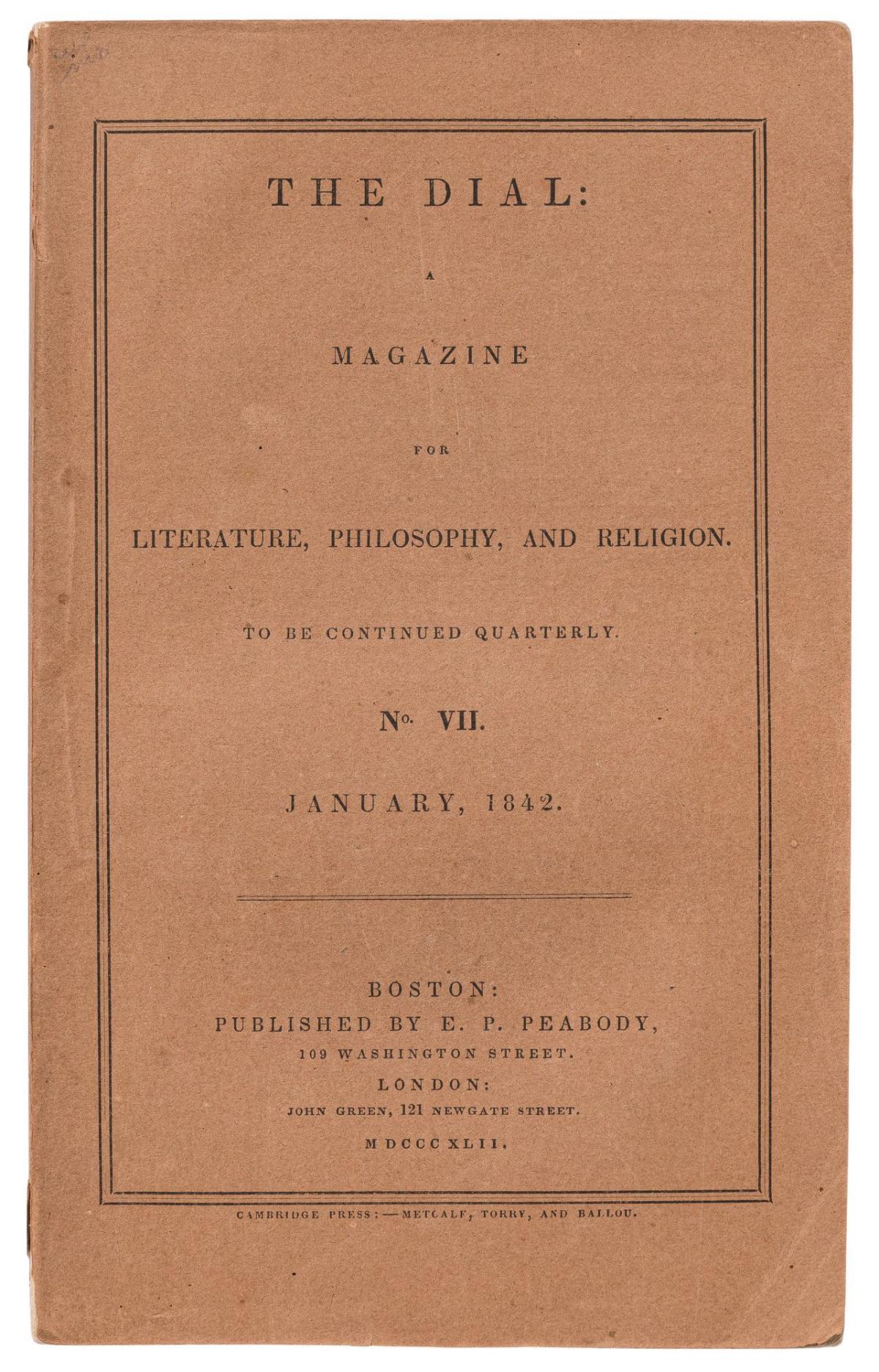 “The Dial: A Magazine for Literature, Philosophy, and Religion.” The Walden Woods Project, www.walden.org/what-we-do/library/thoreaus-contributions-to-the-dial/. Accessed 18 Mar. 2024.