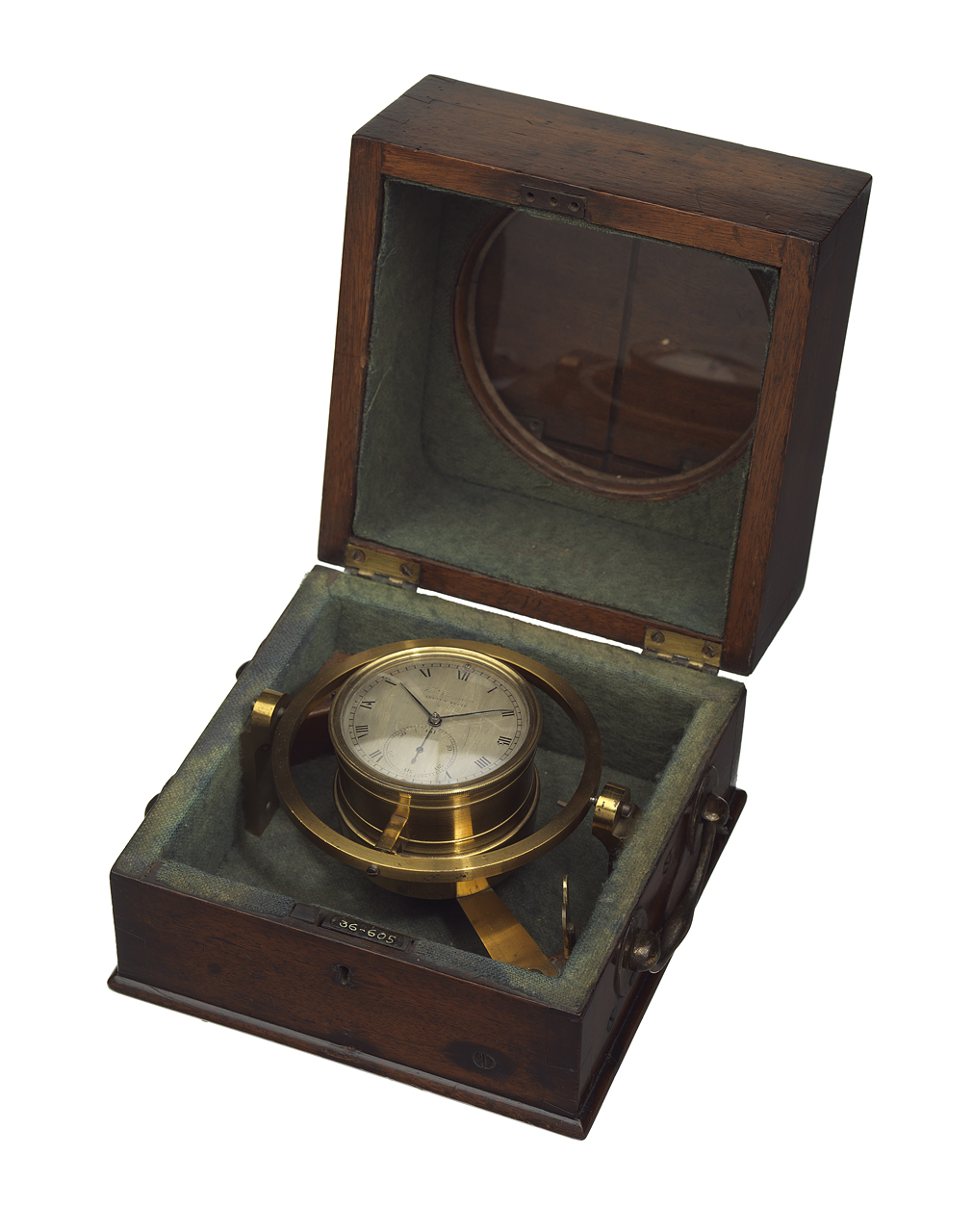 The “Earnshaw 512” is a marine chronometer, a device invented by English horologist John Harrison for determining longitude at sea. This device measures 178 x 210 x 210 mm and is currently housed at the National Maritime Museum in London. The invention of the marine chronometer arose from the offer of a substantial reward by the British Government in the wake of a 1707 naval disaster in which four ships and 2,000 lives were lost due to faulty navigation. This particular marine chronometer is a later model, developed by Thomas Earnshaw sometime around 1800, and has a curious history. The “Earnshaw 512” was a defective model assigned to the ship Thomas Grenville under Captain Manning of the East India Company. When it came to light that the chronometer was malfunctioning, and that Manning had failed to report this, it resulted in a change in legislation by the East India Company that required captains to report the condition and function of their vessel’s marine chronometer at the end of each voyage. In many ways, the Earnshaw 512 chronometer exemplifies some of the issues with the application of technology and innovation in an era of exploration and discovery.