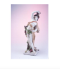 Produced by the Chelsea Porcelain Factory during the 1700s, “Figure of Bacchus” is inspired by Michelangelo’s original sculpture of Bacchus, the God of Wine. The figure, made of soft-paste porcelain, embodies gentle, lighthearted energy that emanates a romantic essence through the fluidity in the subject’s movement, articles of clothing, and identity. Soft-paste porcelain is a relatively fragile but notably attractive ceramic as it can be painted, carved, and decorated with a lot of precision to detail. With the use of hand-painted Polychrome enamel, color and further dimension are added to the figure to bring it to life. Carried firmly in their hand is a pearl white capulet, decorated with lustrous gold embellishments. Whether or not the capulet is filled is not explicitly visible, but given the figure’s swaying stance and various grape bunches, it is likely wine they are drinking from the capulet. Regardless of how diversely depicted Bacchus is, the consistent, specific elements such as grape bunches and a capulet make him recognizable. Without these identifying attributes, the figure is merely a body. Thus, it is Michelangelo’s achievements with his sculpture that makes Bacchus recognizable to many. Michelangelo’s innovative work was widely acknowledged as a fusion of psychological depth and refreshing emotional realism. His innovative approach towards the art of sculpting also contributed to the controversies surrounding his work. Illustrating any taboo such as alcoholism in the depiction of gods in classical Greek and Roman art was deemed disrespectful, regardless of how accurate or representative. Nonetheless, the sculpture received global notoriety and was a widely inspiring piece of art.