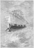 This illustration by Leon Benett is titled “The Clipper of the Clouds” from Jules Verne’s science fiction piece, Robur the Conqueror. The novel was published periodically in Boys Own Paper: this section, “On Board the Albatross” was published on December 11th, 1886. The Albatross, or, the “Clipper of the Clouds” is the name of the fictional ship that was built to conquer the skies. The flying ship was inspired by the flight of birds; however, Robur, the creator of the ship, had difficulties accommodating the weight of the locomotive. Ultimately, he decides on a ship-like platform. To move the Albatross horizontally, Robur equips the platform with propellers on each end. To move the flying-ship vertically, Robur installs helicopter-like rotors.