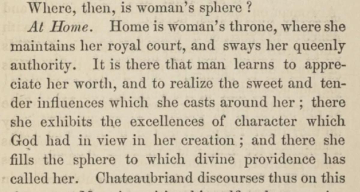 Eddy, Daniel C. “Chapter 1.” The Young Woman’s Friend: Or, the Duties, Trials, Loves, and Hopes of Woman Designed for the Young Woman, the Young Wife, and the Mother, W. Scott, London, 1886, p. 23.
