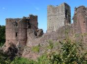 Goodrich Castle is a ruinous Norman medieval castle in Goodrich, Herefordshire, England. It overlooks the River Wye and guards the former Roman road from Gloucester, England to Caerleon, Wales. During the English Civil War (1642–1651), it was held by Parliamentary and then Royalist forces and descended into ruin after a successful besiegement by Colonel John Birch in 1646. By the end of the eighteenth century, Goodrich had become a picturesque ruin and the subject of poems like William Wordsworth’s “We are Seven” (1798), which praised it as the “noblest ruin in Herefordshire.”