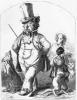 Harrison Weir, "A Very Great Bear," for The Adventures of a Bear, by Alfred Elwes, 1853, The Victorian Web, scanned by Simon Cooke. This fourth illustration is an anthropomorphic bear flaunting his "new dress" in respectable middle-class society. Weir's satirical illustration uses animals to show the extremities of Victorian society's poshness and snobbishness. Elwes's animals dressed as Victorians enable the audience to be entertained but also enlightened. Elwes presents a story about a bear named Bruin, who is bad-tempered and journeys from his paternal home in search of his true self. On his journey, Bruin has few successes and many failures as he comes across other animals who teach him the ways of Victorian life in the society of Caneville. Here Weir depicts Bruin wearing a top hat, coat, vest, cravat, pocket watch, and trousers, holding a walking stick as other animals admire him. The cat tips off his hat towards the bear, signifying she sees him as an elite member of society; a kitten crosses her paws behind herself with deference. The character behind him in a bonnet and dress, Miss. Greyhound, watches him peculiarly, probably contemplative about the "bear gentleman's" true nature. Weir's bear poses as a "gentleman," capturing the desire to be elevated in Victorian society, leading some Victorians to imitate those of a higher class.