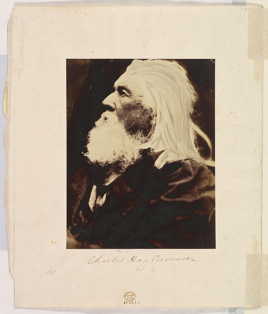 The photograph depicts a portrait of a woman dressed in drapes. From the name of the photograph and the way the woman is dressed, one can deduce that the woman in the picture is a reference to the Virgin Mary. Cameron was a devout Christian and regarded Christian love as the only possible answer to the cruel nature surrounding us (Wolf). The woman’s head takes up almost half the frame, and her clothing and surroundings are nearly shrouded by soft focus in…