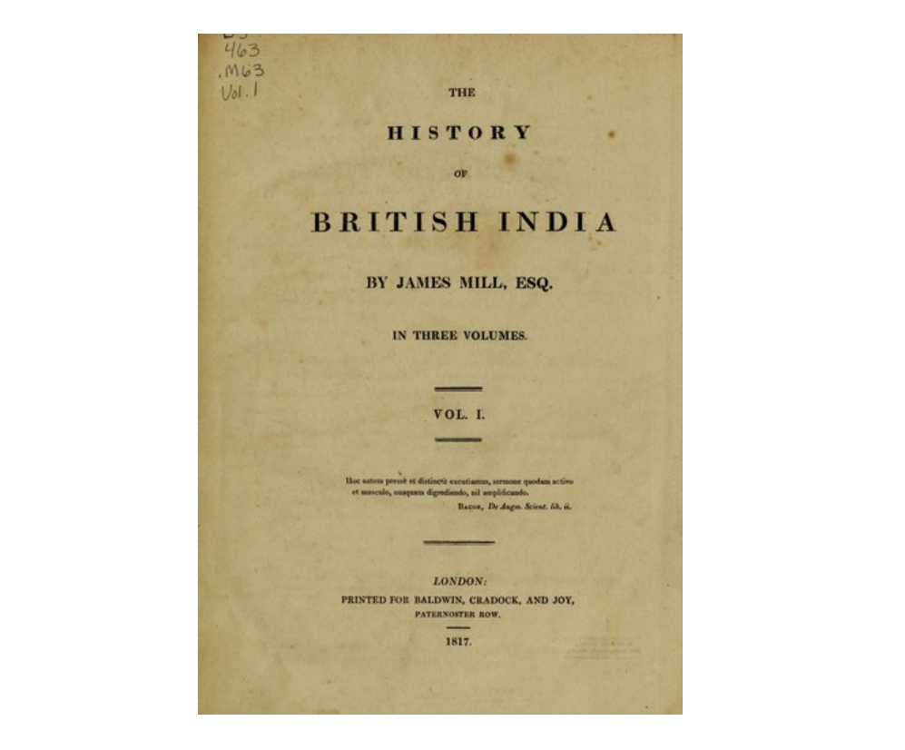 The text is in the public domain: The History of British India in 6 vols. (3rd edition) (London: Baldwin, Cradock, and Joy, 1826). https://oll.libertyfund.org/title/mill-the-history-of-british-india-6-v…