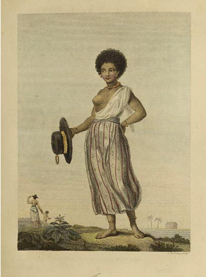 *Engraving of Joanna the woman slave Stedman writes of that he purchases. The engraving and her description is in chapter 5 " The Scene changes—Some Account of a beautiful Female Slave—The Manner of travelling in Surinam—The Colonel explores the Situation of the Rivers—Barbarity of a Planter—Wretched Treatment of some Sailors." From the Book,