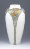 This vase was created by Antoni Serra I Fiter in 1904. Serra was one of the top representatives of Modernisme Catalan art during this time. This piece was included as a decorative element in the interior of the Casa Lleo Morera, which was created by another Modernisme artist. The vase is finely crafted with white porcelain and incorporates Japanese style as well. This fusion of different artistic styles is a characteristic of Modernisme art and demonstrates how this artistic movement aimed to break the mold by incorporating multiple artistic styles into one art piece.