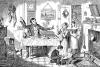 George Cruikshank, "The Bottle is brought out for the first time: The husband induces his wife 'Just to take a drop,'" Plate I in The Bottle, 1847. Scanned image and text by Philip V. Allingham. This series of etchings was reproduced by glyphography by publisher David Bogue, London, so the series of eight plates could be sold for only one shilling (Richard Vogler, George Cruikshank, 159).