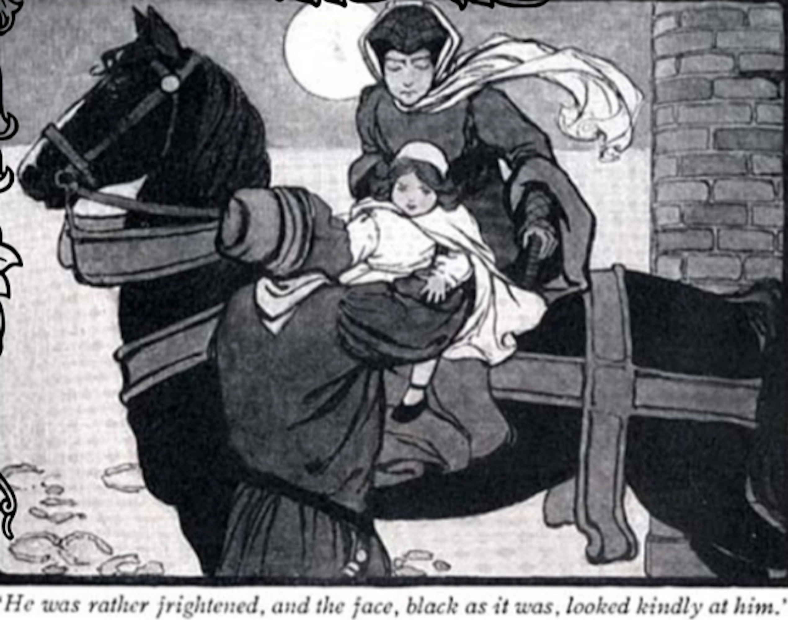 ---. The Little Lame Prince. Illustrated by Rand McNally, Daldy, Isbister and Co., 1909. Image description: "He was rather frightened, and the face, black as it was, looked kindly on him."