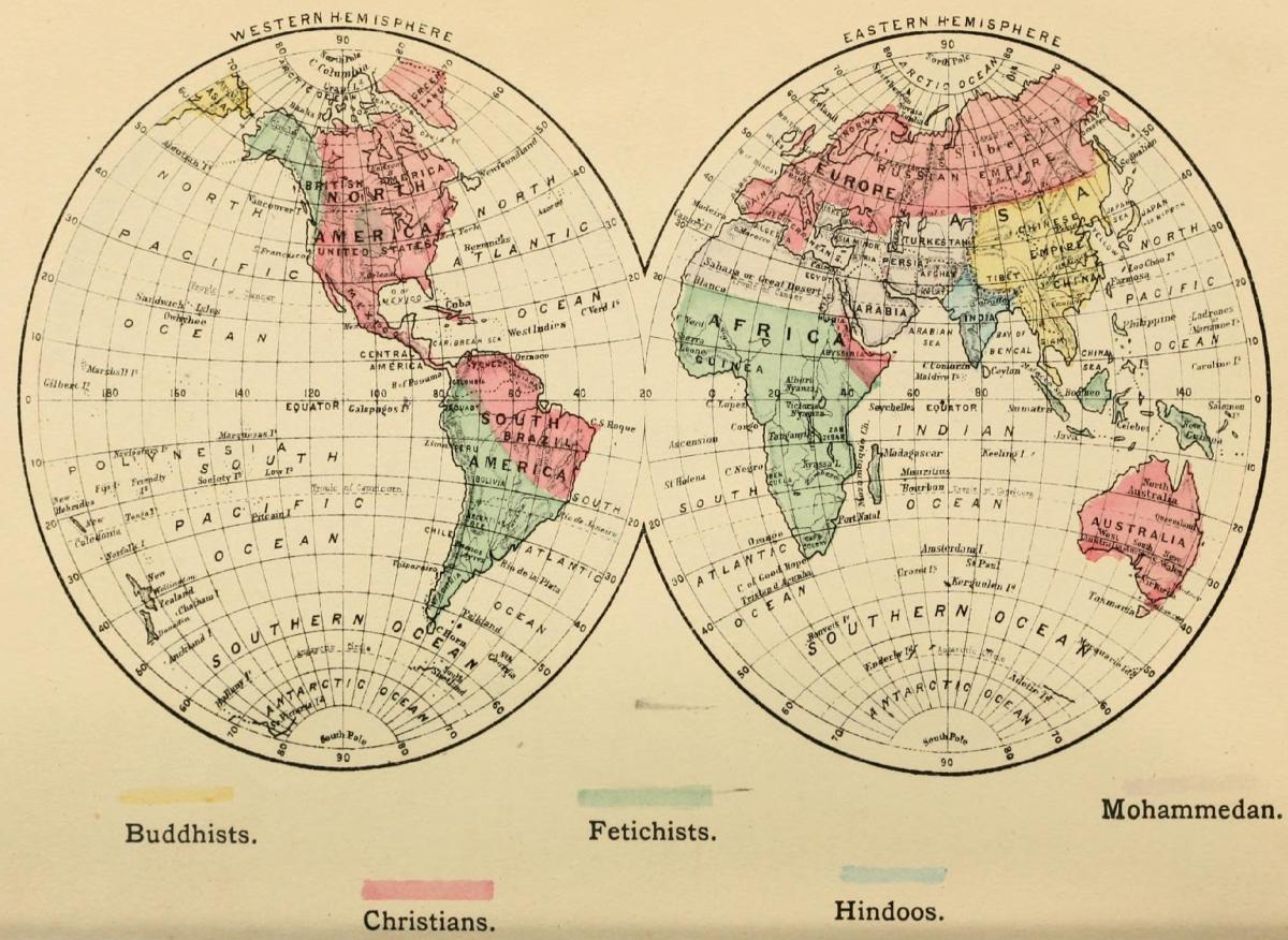 ©1883 religions map.jpg." Wikimedia Commons. 22 Oct 2024, 18:39Reproduced in accordance with the Doctrine of Fair Use, as per 17 USC 107.