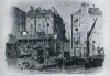 Illustration of "The Warren Blacking Factory" (F259), n.d., from the Charles Dickens Museum collection. This illustration from an unknown artist shows the Warren Blacking Factory where Charles Dickens worked for approximately one year in his youth while his father was in debtors' prison. Like Dickens, fictional David Copperfield was also sent to work at a bottling factory at a young age. At Murdstone & Grinby's, little David pastes labels onto bottles at the young age of ten. In both his autobiographical and fictional writing, Dickens emphasizes the poor conditions of the factories that took advantage of child labor. In his autobiography, he describes the Warren Blacking Factory as "a crazy, tumbledown house with rotten floors and staircase, dirty and decaying, with rats swarming down in the cellar." When writing David Copperfield, he similarly characterizes Murdstone and Grinby's as "a crazy old house... literally overrun with rats. ... [with] decaying floors and staircase, [and] the squeaking and scuffing of the old grey rats down in the cellars" (Norton 136-137). Dickens's own traumatic experiences of long work hours, separation from his family, and an unsanitary lifestyle can ultimately be corroborated with his sympathy for and focus on young, poor children in his work.