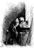 Fred Bernard, "Dickens at the Blacking Warehouse," from The Leisure Hour (1904). In the wake of Victorian industrialization, an economic divide grew between the wealthy and the impoverished. Cities sprung up as job opportunities arose in large factories, yet poor wages, a lack of concern for workers' rights, and cramped living conditions led to overall unrest among the poor. Children were commonly roped into labor when their guardian(s) could no longer support the family unit. Sometimes, children would be deceived into labor with promises of proper meals, easy work, and pleasant working conditions. This illustration by Fred Bernard, a "Sixties" illustrator who provided illustrations for the Household Edition of Dickens, conveys the pressure that children like Dickens were under to support themselves and their families while also alluding to the long, harsh hours of work that many youths had to endure, leading them to fall asleep at the workplace. With these stressors, children were forced to maintain responsibility and a sense of independence that seems unjust today. Because they were forced to work in factories at a young age, both Dickens and David were notably denied a full formal education—an opportunity which many poor, working children of the Victorian era were similarly deprived of (save the two hours of schooling they were allowed per day by the Factories Act of 1833).