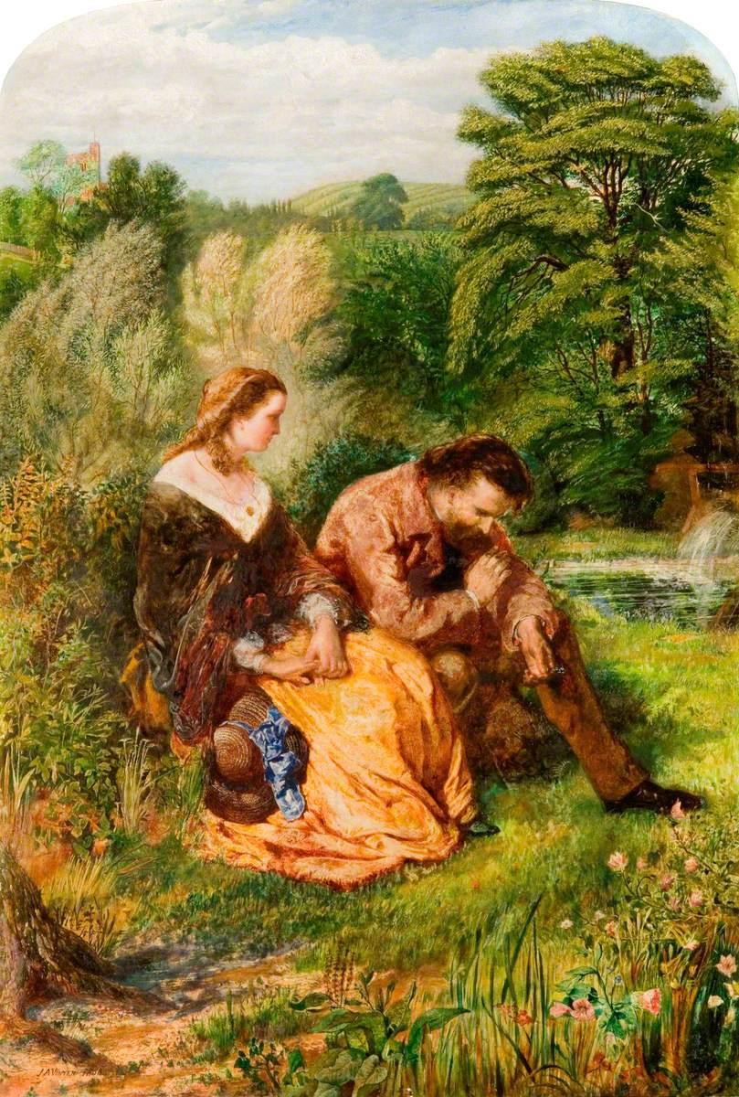 The presence of John Alfred Vinter's painting "The Miller's Daughter," pronounced by Antoinette to be her "favorite picture," (Rhys 21) serves the narrative of Wide Sargasso Sea by reminding the reader (and Antoinette) of her mixed heritage and intersecting cultural ideals. She will never be exactly like the "lovely English girl with brown curls and blue eyes," but Antoinette recalls the "dress slipping off her shoulders" and tries to emulate this fashion later in life to win over Rochester (Rhys 21). In doing so, Antoinette attempts to bridge the gap between her two cultural identities by resembling a beloved English trope: a rustic, naturalistic view on the young lovers. However, Antoinette lacks the skills to consider this cultural divide politically, as she has demonstrated throughout the novel in intimately personalizing each instance of racism (take her reaction to Tia's rant on page 14). Thus, Antoinette cannot conceptualize the idea that her perceived "otherness" cannot be erased by emulating English ideals. In fact, when she arranges her clothes to resemble the miller's daughter in the painting, the effect it has on Rochester is entirely counterproductive: "She was wearing the white dress I had admired, but it had slipped untidily over one shoulder and seemed too large for her. I watched her holding her left wrist with her right hand, an annoying habit" (Rhys 76). Although Antoinette's intention was pure, her manner of dress "confirms instead [Rochester's] suspicion that she has inherited her mother's madness and promiscuity ... Antoinette herself is incapable of realizing that in Rochester's eyes, her attire actually associates her with (black) female sexual wantoness and prostitution" (Mardorossian 1,076). This painting, then, becomes a symbolic idealization of what Antoinette can never fully achieve due to her status as a white Creole.