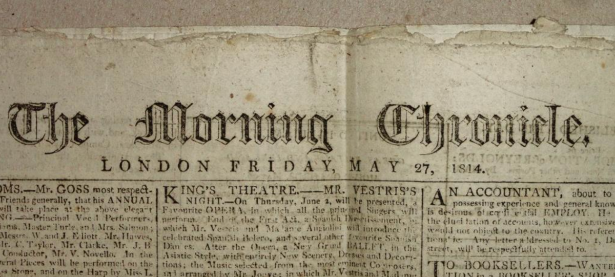 Archive, The British Newspaper. “Morning Chronicle.” Morning Chronicle in British Newspaper Archive, An Unknown Publisher, 4 May 2013, www.britishnewspaperarchive.co.uk/titles/morning-chronicle.