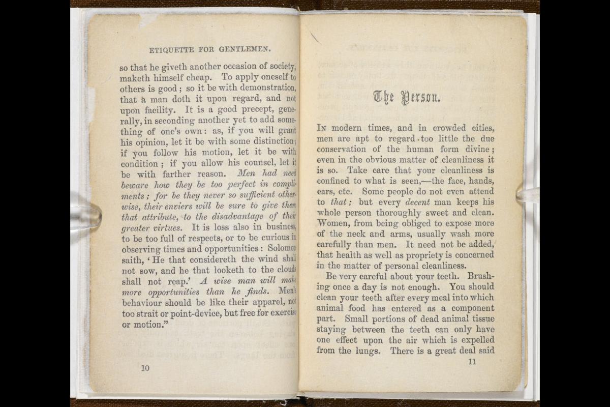 This is one of my favorite pages from one of my pocket etiquette books. I always make sure to carry it around with me throughout my day-to-day life. The words that have always stood out to me are, “A wise man will make more opportunities than he finds” (Hartly 10). I hold these words very close to my heart and I think about them with every decision that I make. Rather than sitting around waiting for something to happen, sometimes you have to make it happen. It was these exact words that helped me make my decision to move to Australia. I had been trying my hardest in England for quite some time, but it seemed like nothing was going my way. I felt like I had been letting my wife down by not providing for the house, and struggling to make ends meet. That was when we decided it was time for me to go try something new and move to Australia. It had not been two days before I was able to find a great job and soon enough I was mining enough gold for us to buy a rather nice house and be able to have things I could never have dreamed of if we had stayed in Britain. It felt like I had finally taken control of my own life. After my wife passed, it was these words that were also on my mind when I chose to return to Britain. I felt that I could no longer sit there in my empty house feeling sorry for myself and not doing anything. That was when I remembered a girl that I had talked to, long before I went to Australia, named Frances Lorimer. I decided it was time for me to leave behind what I had created in Australia and return to my roots. When I returned I immediately proposed to her, and now I happily sit here at Notting Hill writing in my book as my beautiful wife Fan makes dinner.