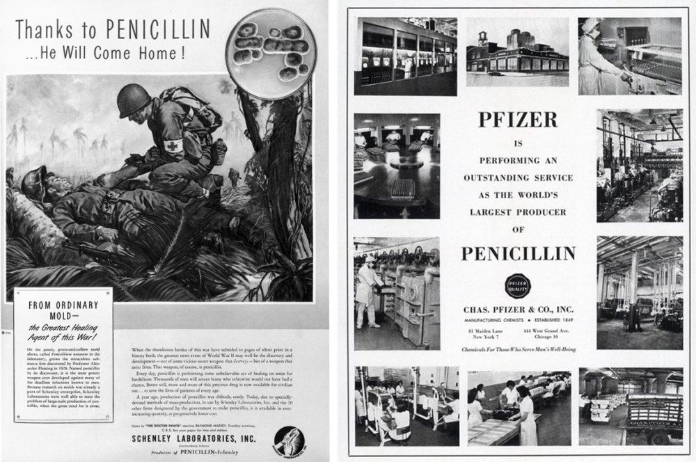 Penicillin Vacinations only became wildly available for the first time in 1946, however played a big role during the emergence of World War Two. According to the Science Museum website, the demand for Penicillin was so great, its numbers boomed in 194, and by 1943 the US and all it's allies were stocked and protected. A common known name from Covid-19, Pfizer also was imperitive to the roll out of this life saving vacination.