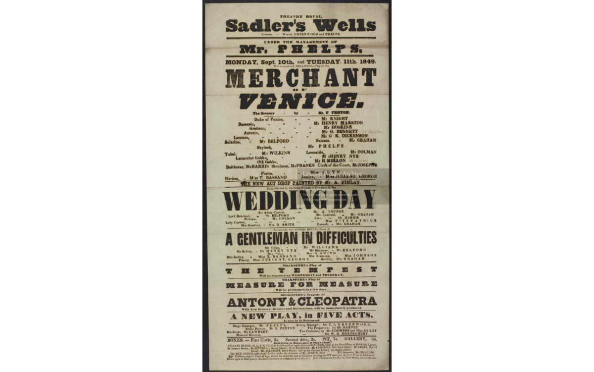 “Playbill for the Merchant of Venice.” London Picture Archive, www.londonpicturearchive.org.uk/view-item?i=322679&WINID=1699234030310. Accessed 5 Nov. 2023.