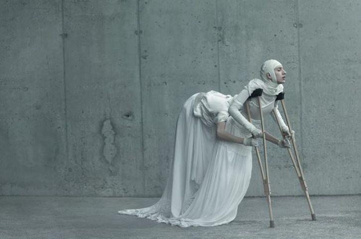 The photo from "In Sickness and Beauty" by Evelyn Bencicova is a perfect representation of how a disturbing image can also be beautiful. The smoothness of the woman's face and the garment that is eerily similar to a wedding dress allows us to sympathize with the lady pictured. Another reason we are drawn to this, is because it is something new. We are always eager to view something for the first time; and that's what Evelyn does here. Barbould writes, “This solution, however, does not satisfy me with respect to the well-wrought scenes of artificial terror which are formed by a sublime and vigorous imagination. Here, though we know before-hand what to expect, we enter into them with eagerness, in quest of a pleasure already experienced. This is the pleasure constantly attached to the excitement of surprise from new and wonderful objects.” You may have seen a drawing where someone has more than two arms, but you have never seen a real image where someone does. That is what Evelyn is able to do throughout all of her work. She is constantly finding ways to make the impossible possible.
