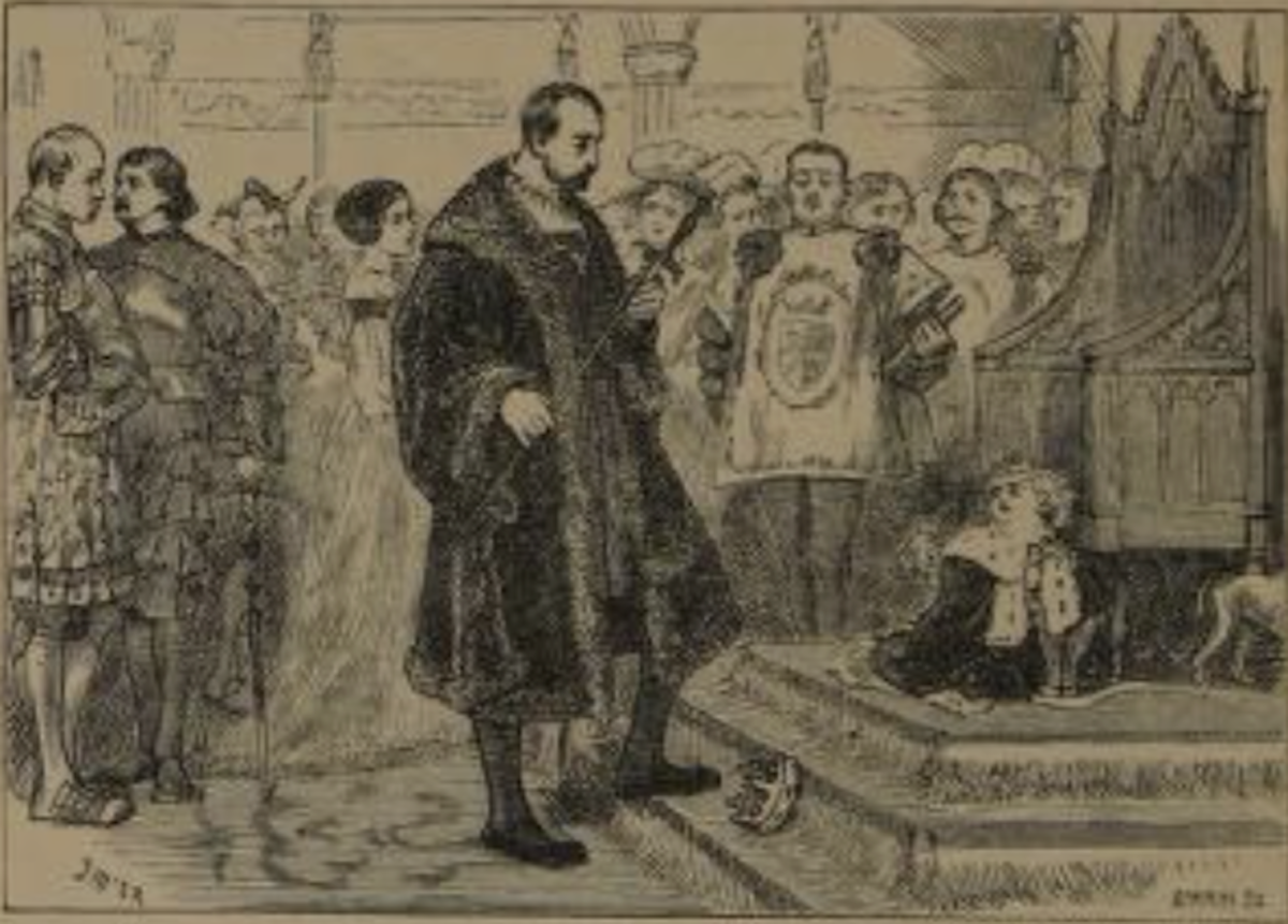This illustration of the crowning of the little lame prince evokes a sense of masculinity. This reveals the traditional sense of masculinity of the Victorian era, with the center focus of the imaging being on the King Regent and not the lame prince, although it is the prince who is being crowned. This illustration highlights the idea that disabled people were viewed as less masculine and less capable in society. The prince is not sitting on the throne, he is instead sitting on the ground with his crown far from his head, showing a sense of weakness. The prince is being depicted as childlike and incapable through his disability. To show him helpless and weak on the grown highlights the limitations his disability put on him, instead of showing him sitting in the throne, being portrayed as the intelligent emotionally strong prince he is. In this image his disability is being used to emasculate him. The illustration also positions the King Regent standing above the prince looking down on the child. This signals a sense of hierarchy not only in the prince's disability, but in a masculine sense as well. The king Regent is more masculine and less disabled, allowing him to be seen as better or stronger.