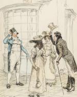 The silhouette--a profile typically done in black and mounted on white--was a popular art form during the 18th and 19th centuries. Indeed, the Regency era when Jane Austen was publishing her novels is the recognized golden age of the silhouette. The term "silhouette" derives from a mid-18th-century French finance minister named Étienne de Silhouette, known to cut paper shadow portraits. The silhouette, a personal memento, became fashionable among genteel patrons of 18th-century and 19th-century Europe and America. Portrait miniatures, which often took the form of silhouettes, were also popular Regency tokens of affection for Jane Austen’s family and her characters, who cherish, display, flaunt, and envy them. By the mid nineteenth century, the daguerreotype and photography eclipsed the silhouette, which came to be viewed as a folk art. Contemporary silhouette artist Kara Walker powerfully revived the art form to comment on pernicious representations of the Black body in visual culture and bring to the fore the ongoing legacy of slavery in the American consciousness.