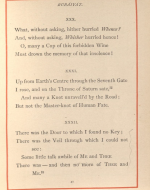Gifted to the “Fair Lady Lucy” by an anonymous “Lover,” Oregon State University’s 1888 edition of Houghton, Mifflin, & Co.’s Rubáiyát of Omar Khayyám: The Astronomer-Poet of Persia offers an interesting look into Victorian courting customs. While this edition first appears as a rather drab gift compared to other, more lavish versions of the coveted rubáiyát, it follows the expectations typical of Victorian gentlemen- to give an expensive gift would be seen as an attempt of bribing their sweetheart, so something simple like a book, flowers, or small chocolates were more acceptable (Meddings.)