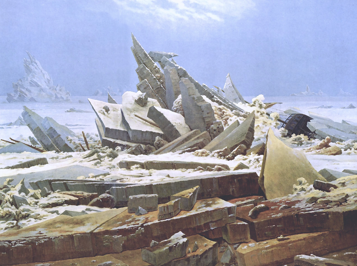 Caspar David Friedrich’s painting, The Sea of Ice, captures the era’s opposing sentiments regarding exploration and human nature. One one hand, we see the beauty of the final frontier; it's awe inspiring wonder. But shown too are subtle cautionary warnings. Indeed, the piece offers a critique on the notion that progress is always beneficial; that no frontier should be left unexplored. Fittingly encompassing these paradoxical sentiments is the sense of the sublime pervading the painting. Both feelings of terror and pleasure are invoked, coinciding with the juxtaposed arguments surrounding exploration. Friedrich highlights, along with Coleridge and Shelley, that certain barriers are not meant to be crossed, physically and psychologically; that the era’s high stature surrounding ambition and the pursuit of progress may entail unintended consequences. Friedrich shows this rather overtly with the wrecked ship within the deadly ice. Coleridge provides a more abstract take, but obvious is the thematic subjugation of humanity towards divine law. Mary Shelley distils all viewpoints and crystallizing them into a novel. She provides the most overt warning signs regarding the blind pursuit of knowledge and danger of transgressing one’s nature. Overall, what we can grasp is an era rife with anxiety concerning what barriers should and shouldn’t be crossed. In an era where only the most extreme frontiers are left, we finally begin to see alternative notions come to the forefront. Namely, that ambition is not our ultimate salvation—what we should instead embrace is what we already have, not what we can potentially find.