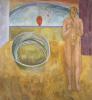 For my display, I envision a small room with its walls and ceiling painted with soft pastel colors and shapes to match the style of the three paintings. I imagine that the three paintings would be arranged each on their own walls of the room with light amber frames, also with information about the piece and a small biography of the painter being written on a plaque next to each painting. I believe that the display would also have warm light shining on each painting and biography to make them pop out against the room's walls; also small trails of painted vines, hair, and waves of water that both link all of the paintings together, but also portray a shared theme amongst them all.