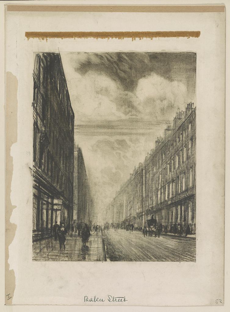 Pennell, Joseph. Baker Street . Squire, J.C. A London Reverie, MacMillan and Co., Limited, 1928, No. VI., 1908, Baker Street .