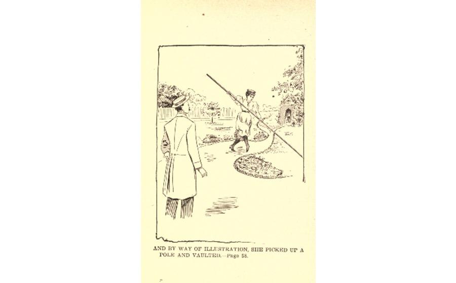 This illustration depicts a woman with a pole vault being watched by a concerned man. The caption below the drawing reads “and by way of illustration, she picks up a pole and vaults.” This woman represents the ways of the New Woman. As described by Grand in “The New Woman in the Old”, “Her will is a quantity to be reckoned with. Her faults are the overflow of her exuberant spirits.” This woman believes that she is entitled to her own happiness and does not have to rely on others to receive it. The New Woman’s commentary illustrates this belief, as she wants to place her happiness first and not the worries of society. The woman in the illustration also greatly expresses this, as she is not concerned about the man watching her. She is proving that she deserves to have freedom, along with all other women.