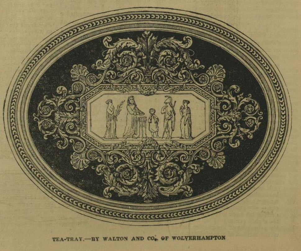 "Tea-Tray. By Walton and Co." Illustrated London News, 20 Sept. 1851, p. 364. The Illustrated London News Historical Archive, 1842-2003, link-gale-com.proxy.uchicago.edu/apps/doc/HN3100029165/ILN?u=chic_rbw&sid=bookmark-ILN&xid=af6b32fc. Accessed 11 Feb. 2022.