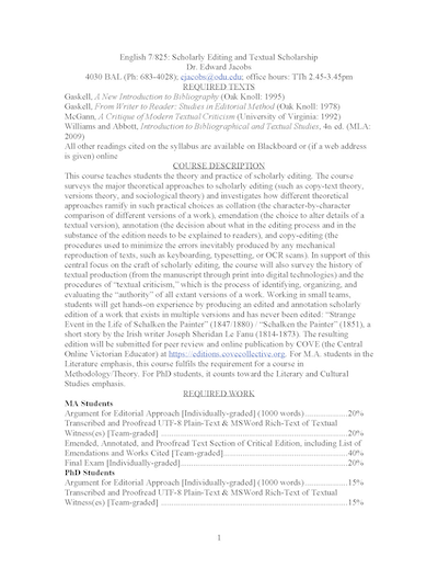 Edward Jacobs, "Scholarly Editing and Textual Scholarship"