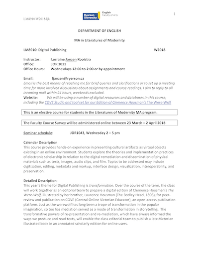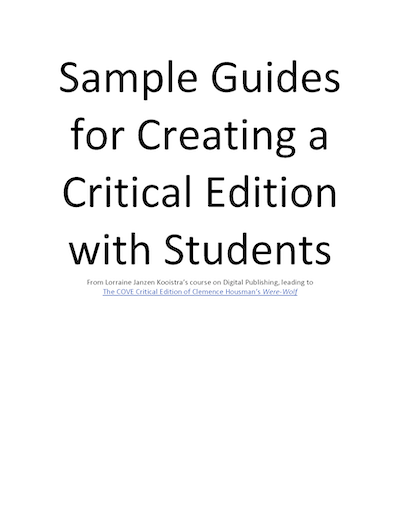 Lorraine Janzen Kooistra, "Sample Guides for Creating a Digital Edition with Students"